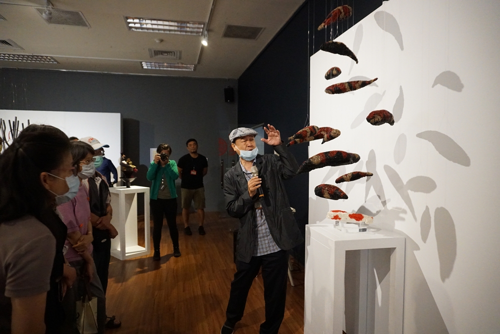 此次展出的作品中,囊括了眾多特殊材質的創作,其中包含竹編、木藝、陶瓷外,林俊男老師更利用廢棄物進行創作,將原本看似無價值的物件賦予創作思維,呈現出藝術創作的多元樣貌。本次展出多件裝置藝術,透過活潑且富隱喻性的藝術設置,讓作品與人之間產生對話,使觀賞者常駐足流連多時,提升了作品與觀賞者內心的互動。