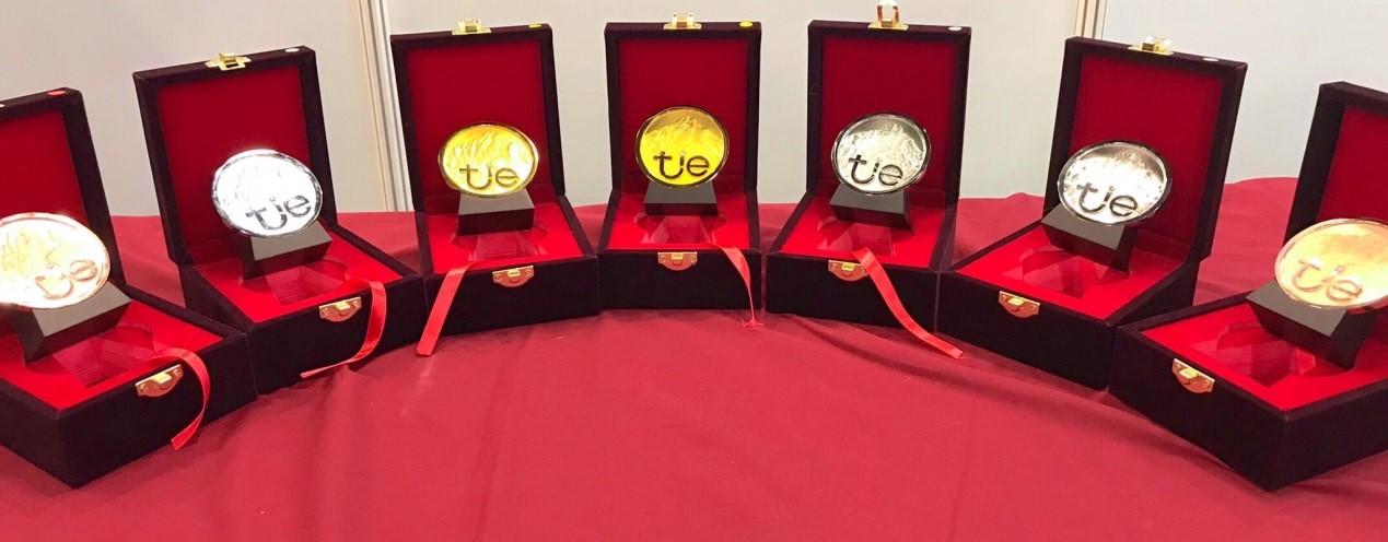 兩件銅牌作品分別為資工系許永和老師的專利「車鎖系統」,此發明係提供一種車鎖裝置,並應用於一車輛,其包含一感測器、一微處理器及一無線傳輸模組。藉由上述配置,行動裝置可透過無線傳輸模組,遠端監視或控制車輛之狀態;以及電子系陳文瑞老師的專利「紅外線拔罐器」,本產品透過網路連接上雲端伺服器,將醫生端所設定的療程讀取下來,特徵其一是每一穴位拔罐的時間、溫度、與壓力由醫生處方後設定,特徵其二是本遠紅外線熱放射是定點式放射的微小點光源,係利用LED所發出來的熱,來激發陶瓷粉而產生遠紅外線輻射,特徵其三是拔罐杯具有自動壓力感測,壓力值可設定。