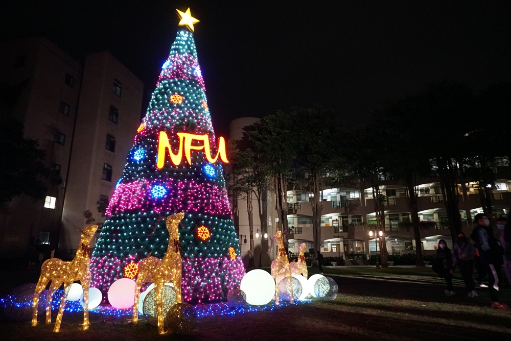 2021聖誕祈福點燈冬季派對由雲林在地「波波貓樂團」為派對暖場,在校長張信良拉響禮炮點亮9米高的聖誕樹主視覺,為活動揭開序幕。現場並舉行聖誕樹布置比賽,由在校本國與外籍學生共同組隊參賽,佈置10棵3呎高聖誕小樹,碰撞文化交流的新火花。當天將由現場觀眾進行投票,票選出人氣最高的前3名由國際長陳立緯頒獎。