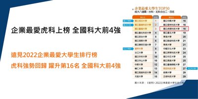 繼2021年本校高教深耕成果展大獲好評後,遠見雜誌1月24日公布的2022企業最愛大學生排行榜中,虎...